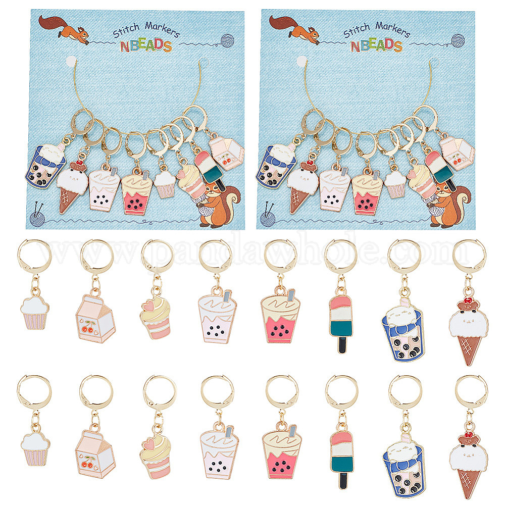 Подвесные маркеры петель из сплава эмали, подвески крючком, маркер с замком и кольцом с подвеской в виде винного бокала, молочный чай/мороженое на палочке/кекс
