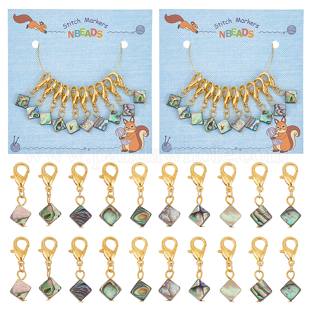 10Шт. ромбовидные раковины paua, вязаные крючком, с застежкой-карабином, маркер с замком и кольцом с подвеской в виде винного бокала