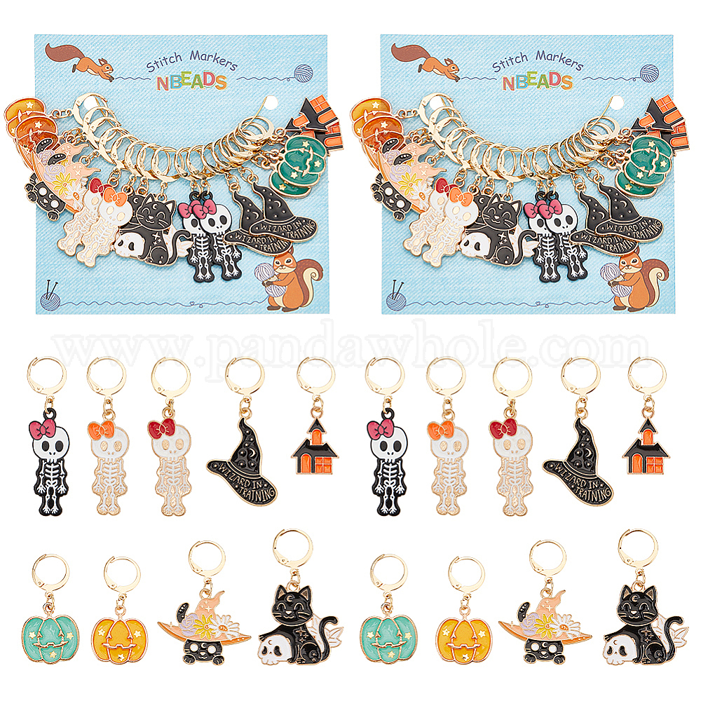 Маркеры для стежков с кулоном из сплава на тему хэллоуина, подвески крючком, маркер с замком и кольцом с подвеской в виде винного бокала, тыква/дом с привидениями/кот и череп