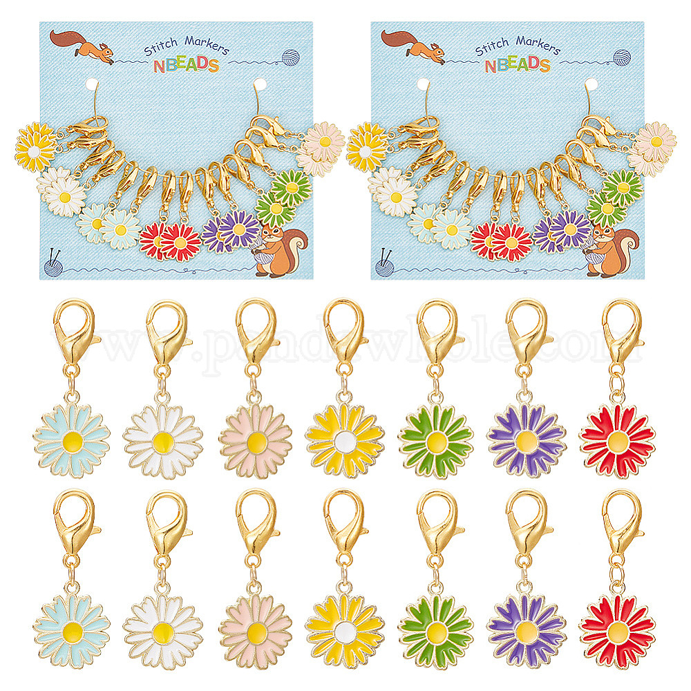 Маркеры ромашки, подвески из сплава эмали крючком с застежкой-лобстером, маркер с замком и кольцом с подвеской в виде винного бокала