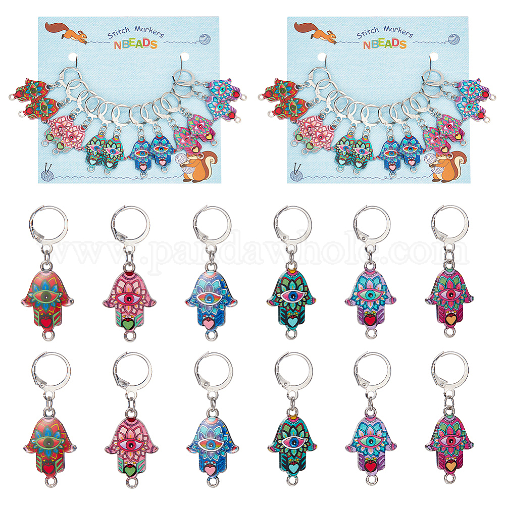 Подвесные маркеры петель из сплава эмали, подвески крючком, маркер с замком и кольцом с подвеской в виде винного бокала, Хамса рука с рисунком сглаза