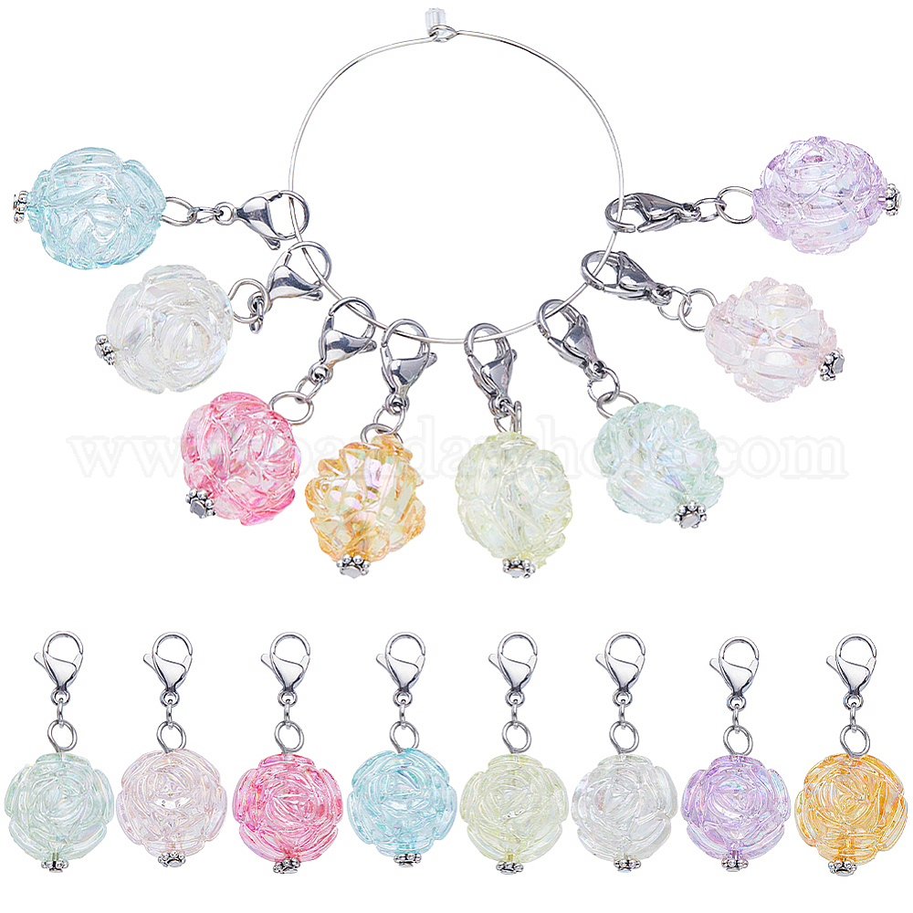 Маркеры петель розы, прозрачные акриловые подвески крючком с застежкой-лобстером, маркер с замком и кольцом с подвеской в виде винного бокала