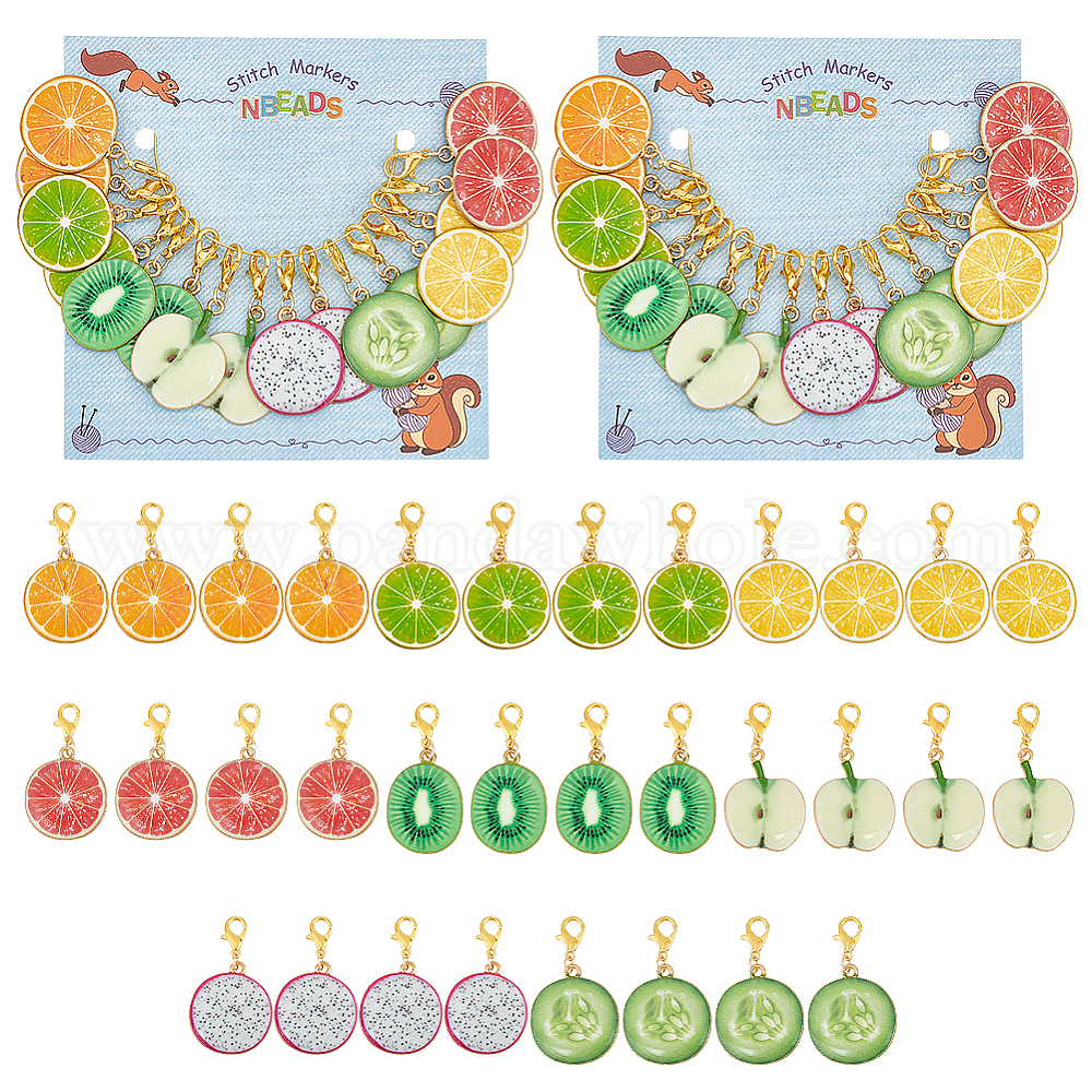 Маркеры для подвесок в виде кусочков фруктов, подвески из сплава эмали крючком с застежкой-лобстером, маркер с замком и кольцом с подвеской в виде винного бокала