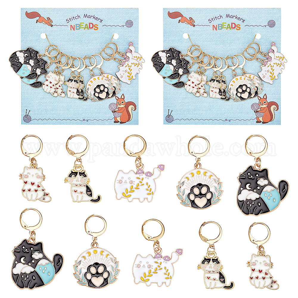 • (52) Непрозрачная лаванда Маркеры для подвесок из сплава с эмалью и принтом «кошка и лапа», подвески крючком, маркер с замком и кольцом с подвеской в виде винного бокала, разноцветные, 3.5~4.2 см, 5 стиль, 2 шт / стиль, 10 шт / комплект