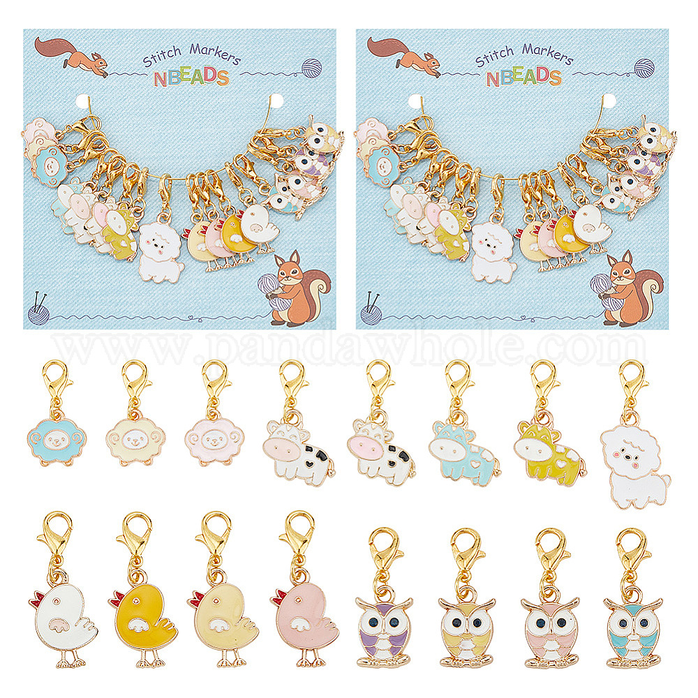 Подвесные маркеры петель из сплава эмали, Подвески с застежкой-лобстером, связанные крючком, с животной тематикой, маркер с замком и кольцом с подвеской в виде винного бокала, разнообразные