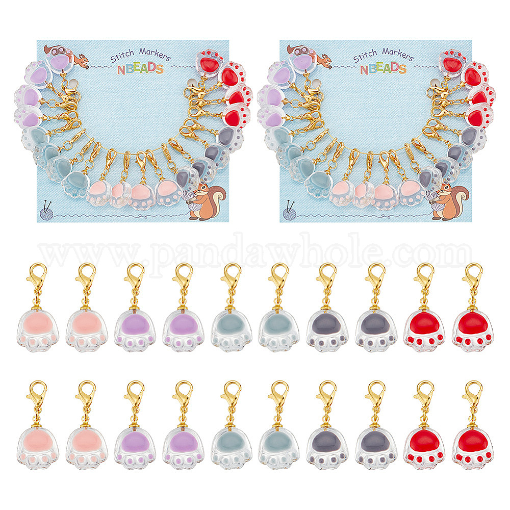 • (52) Непрозрачная лаванда Маркеры-подвески из прозрачной стеклянной эмали, Подвески с застежкой-лобстером и принтом кошачьей лапы, связанные крючком, маркер с замком и кольцом с подвеской в виде винного бокала, разноцветные, 3.2 см, 5 цветов, 4 шт / цвет, 20 шт / комплект