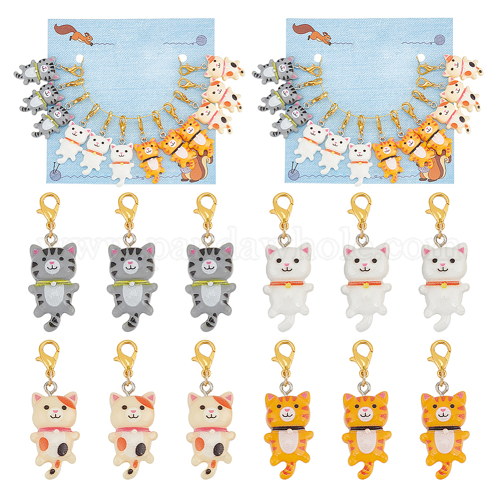 Маркеры петель подвеска кошка, подвески-карабины из непрозрачной смолы, связанные крючком, маркер с замком и кольцом с подвеской в виде винного бокала
