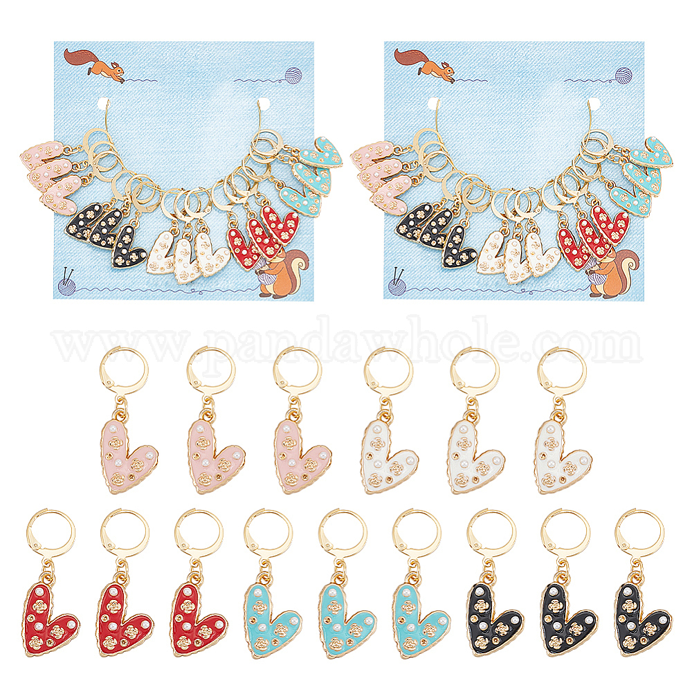 Эмаль из сплава в форме сердца с подвесными маркерами для петель с имитацией жемчуга из АБС-пластика, подвески крючком, маркер с замком и кольцом с подвеской в виде винного бокала