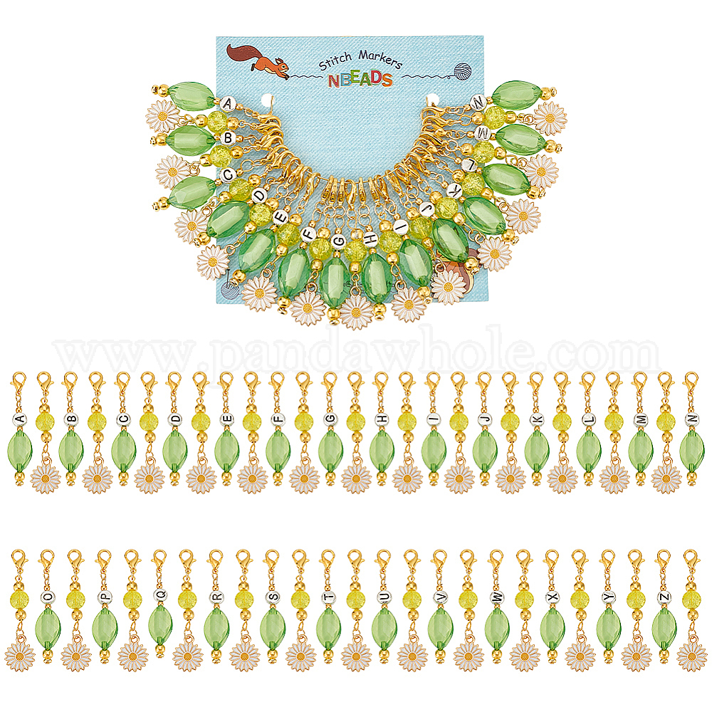 Маркеры-подвески в виде ромашек и овалов, Подвески-застежки-лобстеры, связанные крючком из акрила и сплава, эмали и стекла., маркер с замком и кольцом с подвеской в виде винного бокала (02K8NY)