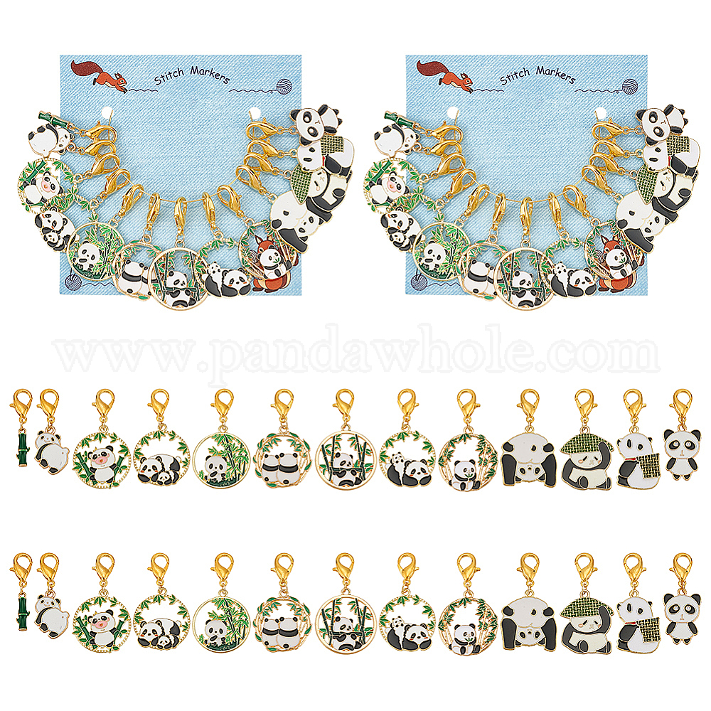 Маркеры для подвесок в виде панды и бамбука, подвески из сплава эмали крючком с застежкой-лобстером, маркер с замком и кольцом с подвеской в виде винного бокала