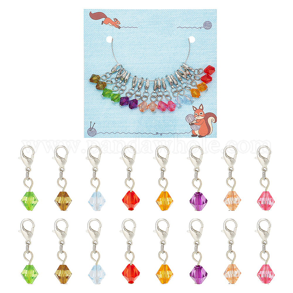 Двухконусные подвесные маркеры петель, прозрачные акриловые подвески крючком с застежкой-лобстером, маркер с замком и кольцом с подвеской в виде винного бокала