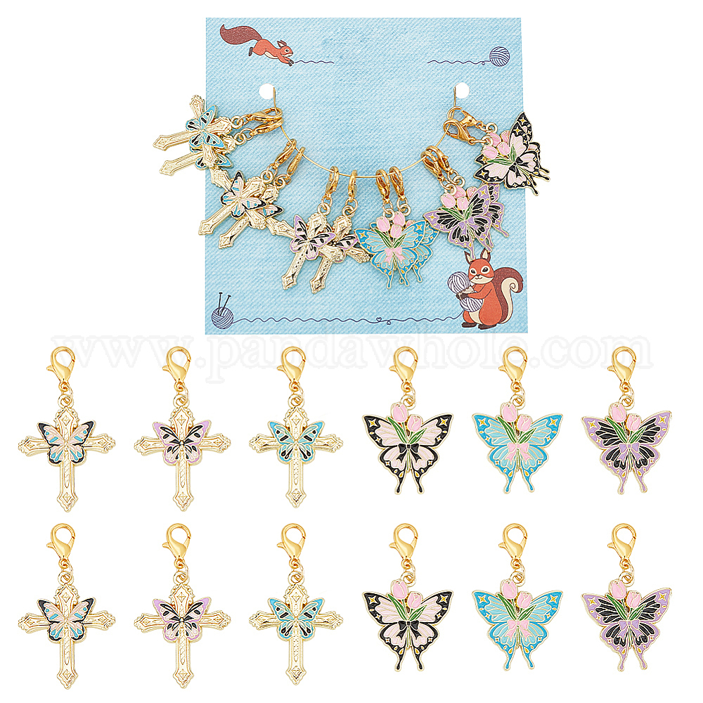 Маркеры для вышивания подвесок «бабочка, роза и крестик», подвески из сплава эмали крючком с застежкой-лобстером, маркер с замком и кольцом с подвеской в виде винного бокала