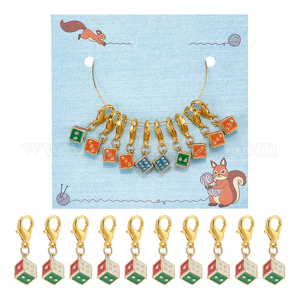 Подвесные маркеры петель из сплава эмали, подвески крючком, маркер для запирания петель с застежками-карабинами из сплава, игральная кость