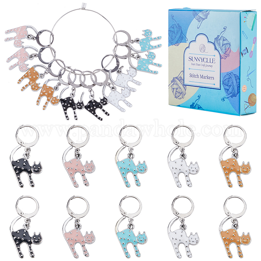 20шт. 5 цвета в форме кота, сплав эмали, подвеска, маркеры для запирания стежков, подвески крючком