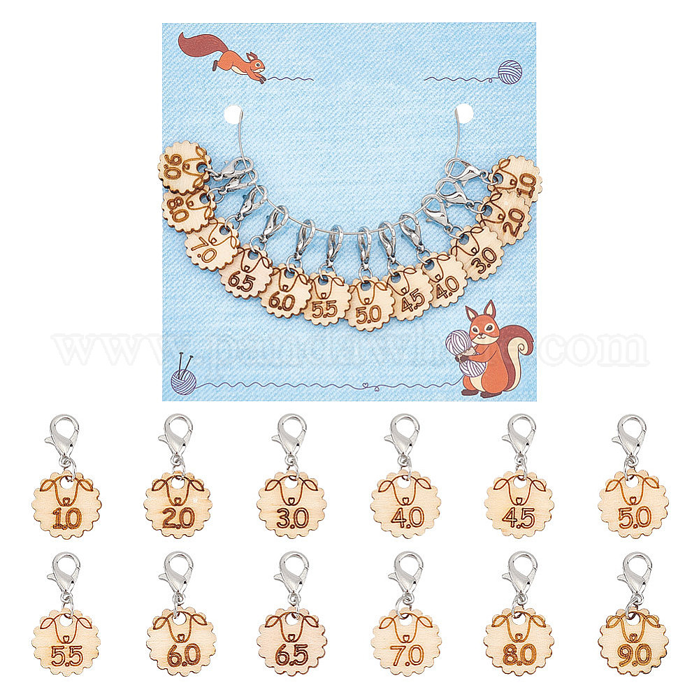 12 шт. 12 стиль овцы с цифрами, деревянные подвески, маркеры для закрепки стежков, подвески крючком с застежкой-лобстером