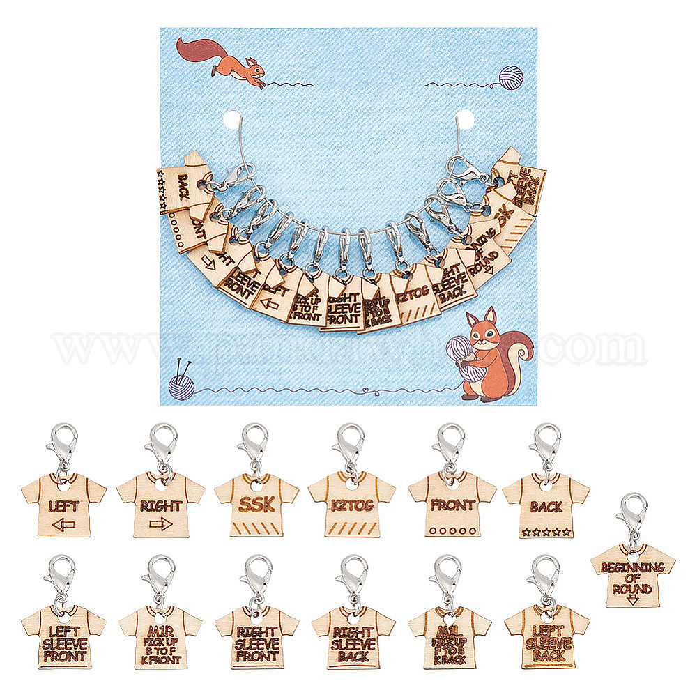 13 шт 13 стиль футболки направляющая деревянная подвеска маркеры для запирания стежков, Подвески с застежкой-лобстером из цинкового сплава, связанные крючком