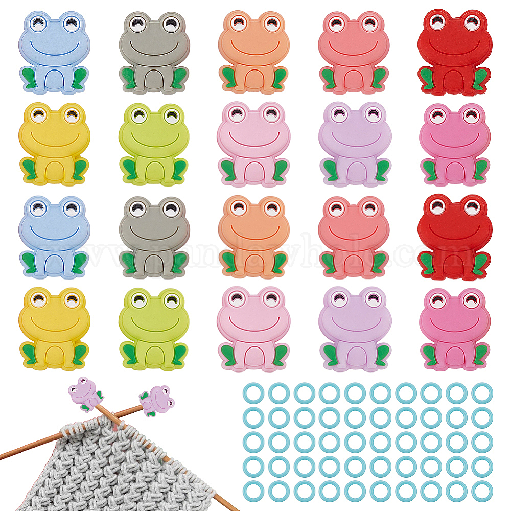 Лягушка силиконовые протекторы для кончиков спиц, Ограничители спиц с пластиковым кольцом-маркером для вязания петель.