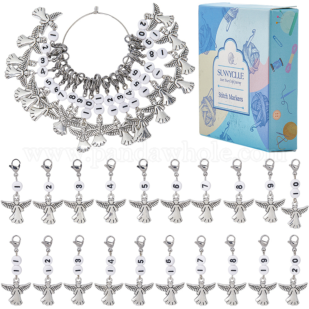 20 шт., акриловые бисерные подвески, маркеры для запирания стежков с ангелом из сплава, 304 вязаные крючком подвески-лобстеры из нержавеющей стали