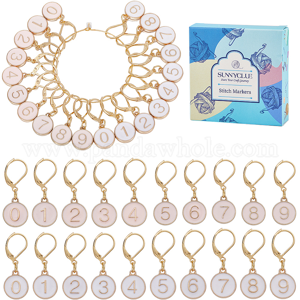 20 шт. 2 цвета, плоские круглые, с цифровыми эмалевыми фиксирующими подвесными маркерами для стежков, подвеска-обруч из латуни, связанная крючком