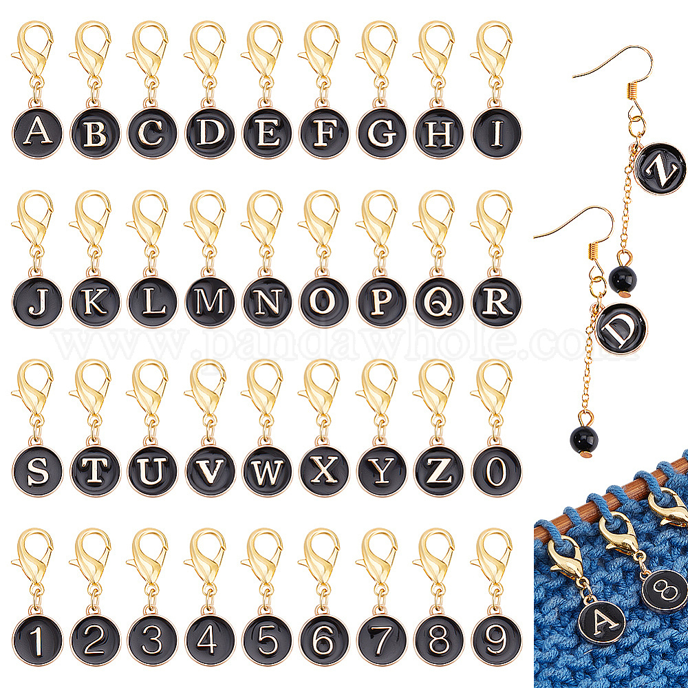 • Черный 36шт. 36 стильные буквы A~Z и цифры 0~9 маркеры подвесных швов из сплава эмали, подвески с застежкой-лобстером крючком, чёрные, 3 см, 2 шт / стиль