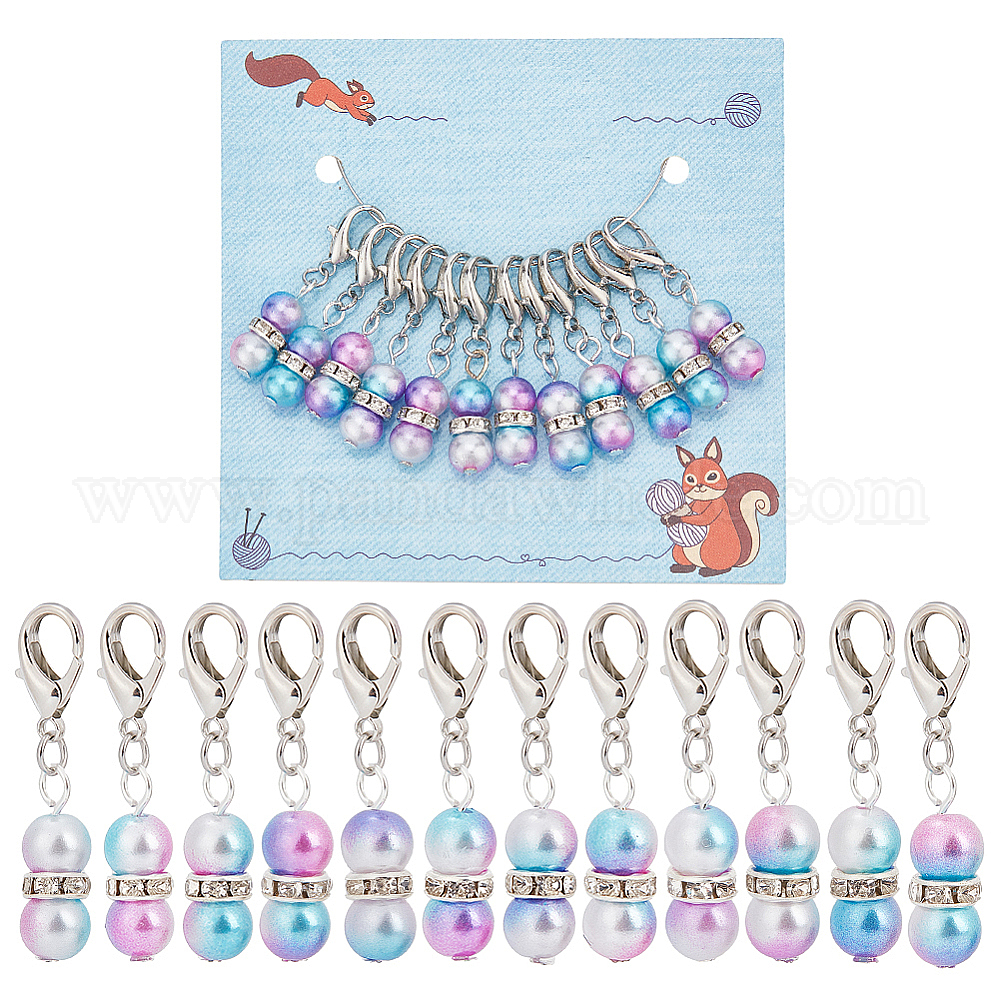Круглые маркеры для стежков из радуги из АБС-пластика с имитацией жемчуга, подвески с застежкой-лобстером крючком