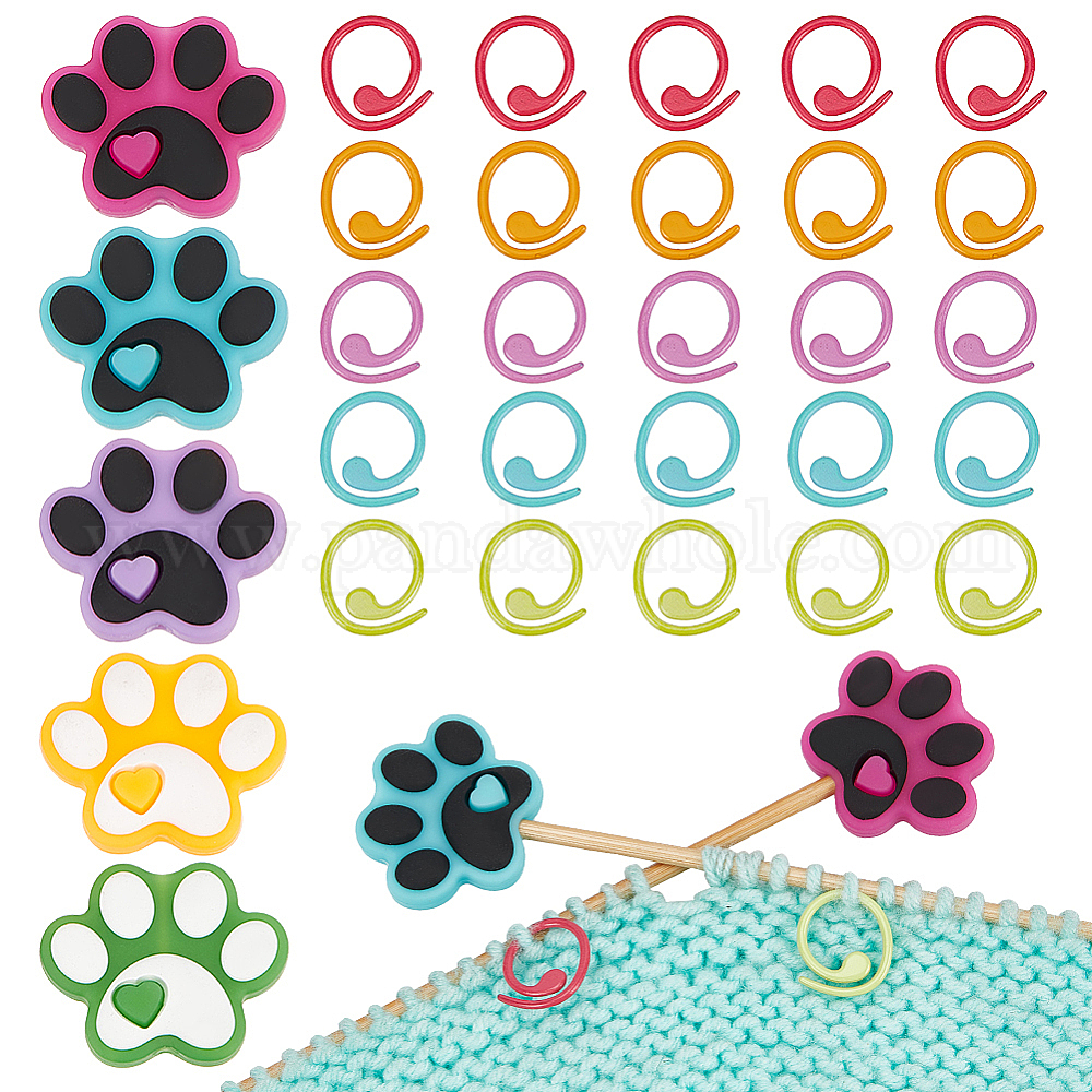 Силиконовые стопоры для спиц с принтом собачьей лапки, кольца маркера для вязания из цинкового сплава, окрашенные в запекание