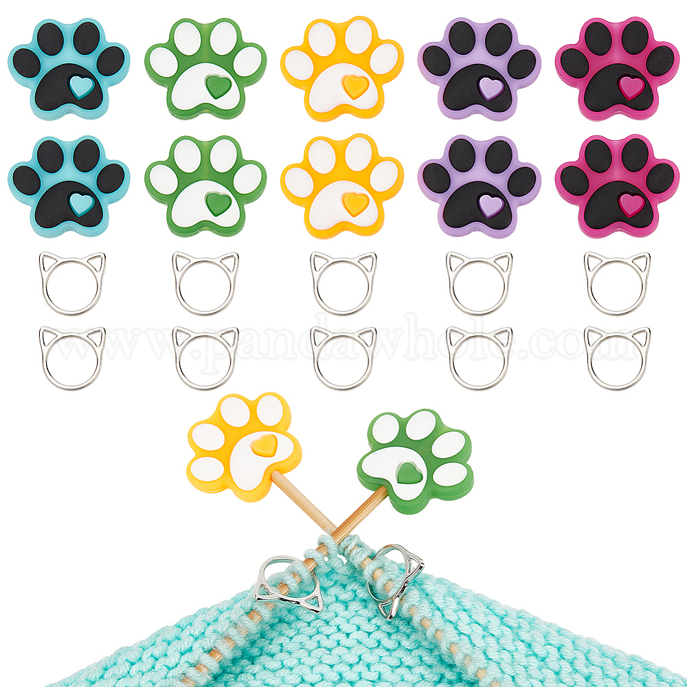 Силиконовая бусина с принтом собачьей лапы: около 24x29x8.5 мм, отверстие : 2.5 мм, 5 цветов, 2 шт / цвет, 10шт;