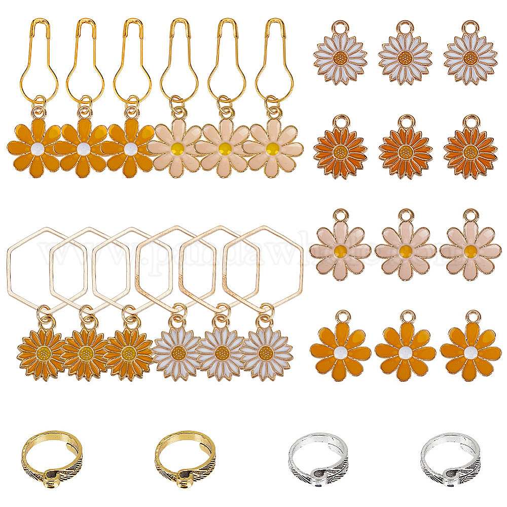 Наборы инструментов для вязания своими руками, включая подвесные маркеры для петель с эмалью из сплава «ромашка», подвески и держатель для пальцев из сплава