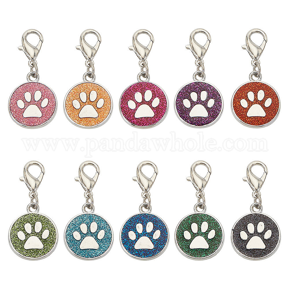 20 шт. 10 цвета эмалевых подвесных маркеров для петель, подвески крючком, с цинковым сплавом застежками омаров коготь, плоский круг с принтом лапы собаки