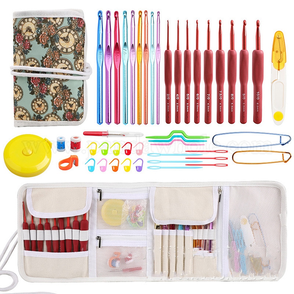 Наборы инструментов для вязания своими руками, включая сумку для хранения, вязальные спицы, крючок для вязания, маркеры и держатели фиксирующих стежков, сантиметровая лента, ножницы и иглы, счетчики строк