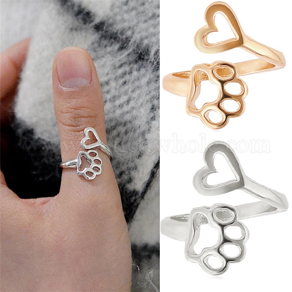 Кольца-манжеты из сплава с принтом сердца и лапы, петли вязания крючком, держатель нитенаправителя