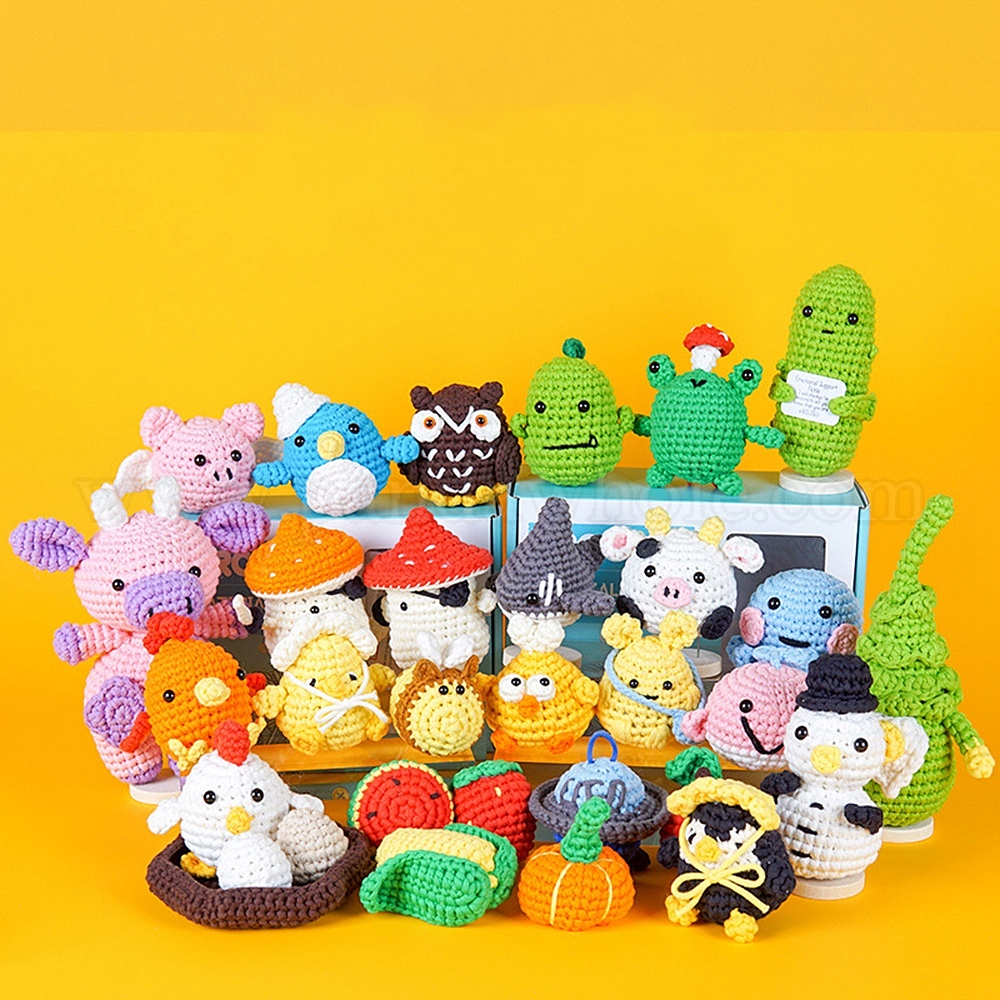Наборы для вязания своими руками анимал для начинающих, включая крючок для вязания, иглу и пряжу, начинка, инструкции, маркер стежка, рулетка