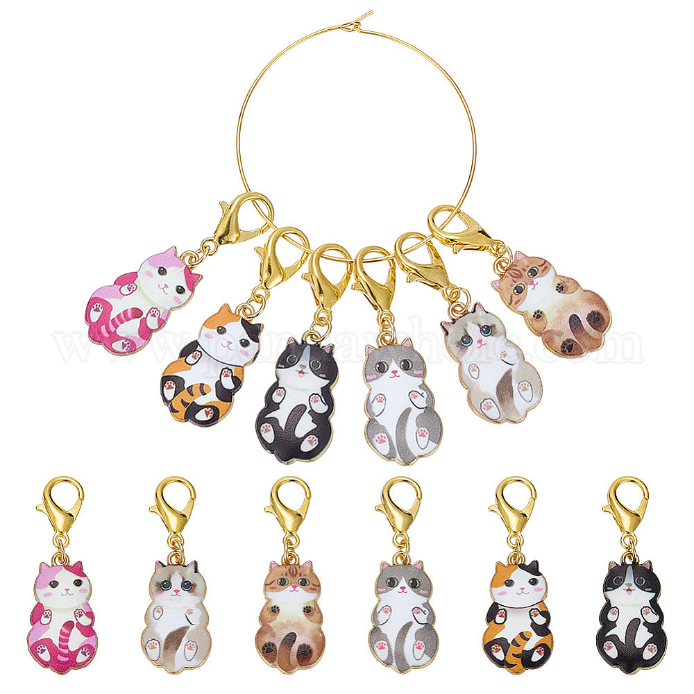 12 шт. 6 цвета кошка сплав эмаль кулон запирающиеся маркеры стежков, Сплав с застежками когтя омара