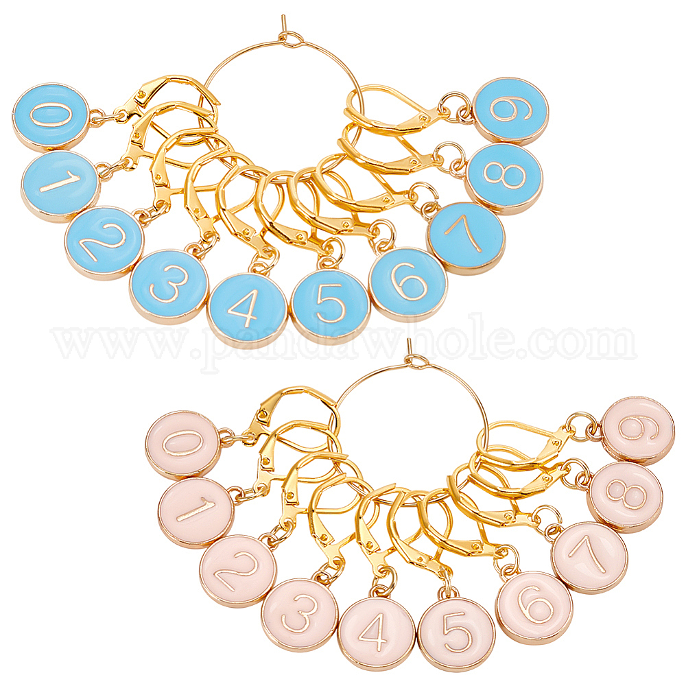 20 шт. плоские круглые с номером 0~9 эмалированные подвески-маркеры для фиксации стежков, с накладками из латуни