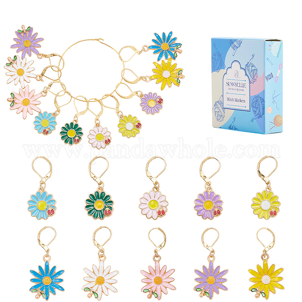 20 шт 10 стили цветок сплав эмаль кулон запирающиеся маркеры стежков, с 304 серьгами из нержавеющей стали