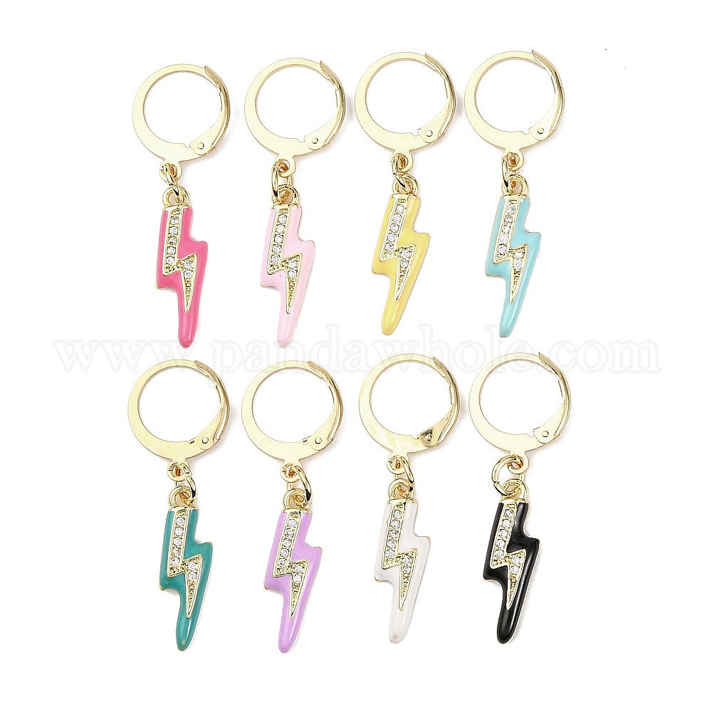 Кольца-маркеры для вязания с микропаве из кубического циркония в виде молнии из латуни, Эмаль стиле, с 304 фурнитурой из нержавеющей стали