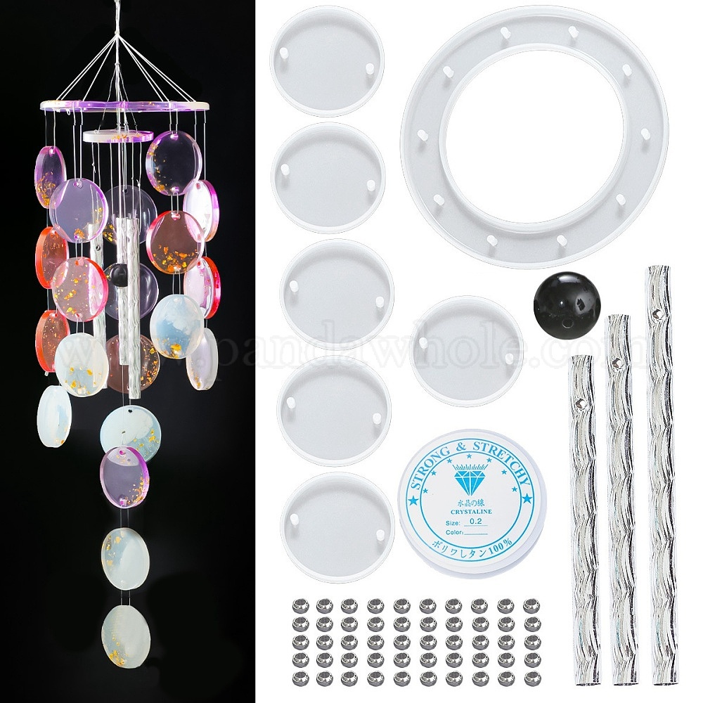 DIY плоские круглые комплекты для изготовления колокольчиков, в том числе силиконовые формы, алюминиевая трубка, акриловых бусин и кристаллов темы