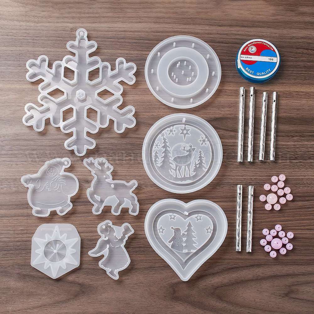 Набор для изготовления колокольчиков своими руками, Новогодняя тема, в том числе силиконовые формы, леска из нейлоновой мононити, пластиковые шарики, алюминиевые трубы