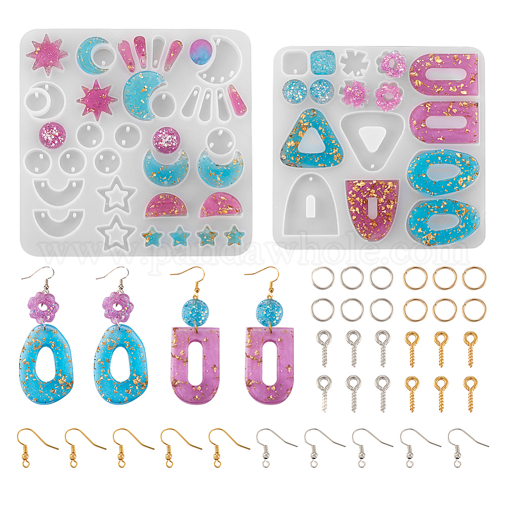 Сделай сам наборы сережек, включая 2 шт силиконовые подвески и формы для звеньев, 60 шт латунные серьги крючки, 100железные открытые переходные кольца и 40штифты с проушиной для винтов