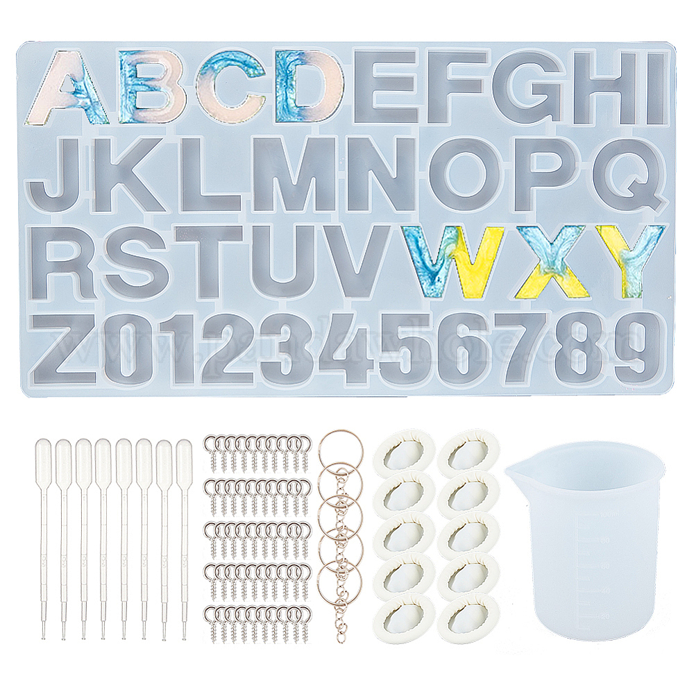 Набор для ключей, с цифрами и буквами силиконовые формы, железные сплит кольца для ключей и винтовые петли, латексные кроватки, пластиковые пипетки, силиконовая мерная чашка