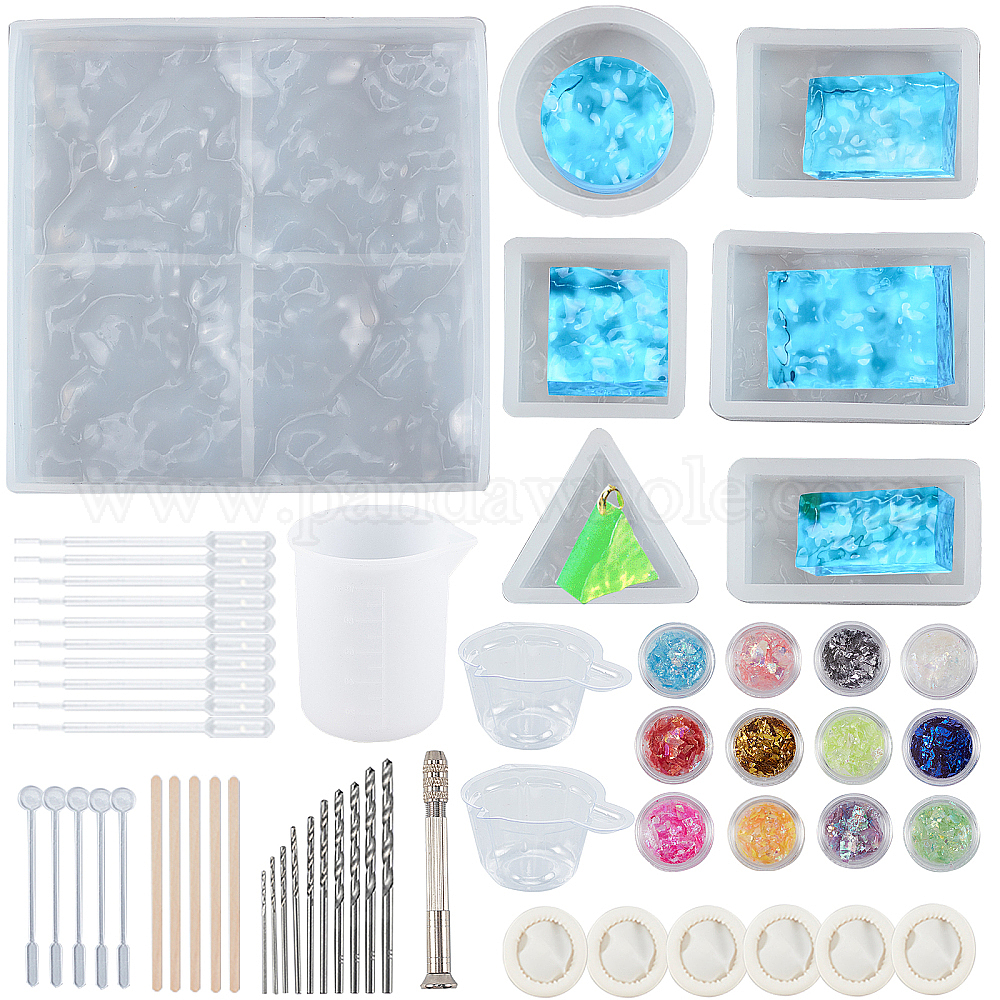 • Белый Силиконовые формы для океанских линий воды, с набором микро сверл, блестки для ногтей / пайетка, стержень мешалки, одноразовая миска, деревянные ремесленные палочки, латексные кроватки, мерный стакан, белые, 51.5x35.5x17 мм