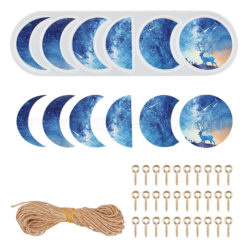 Наборы силиконовых форм в форме фазы Луны своими руками, с наборами форм для литья из смолы, джутовый шпагат и 304 винтовые петли с проушинами из нержавеющей стали (023ER8)