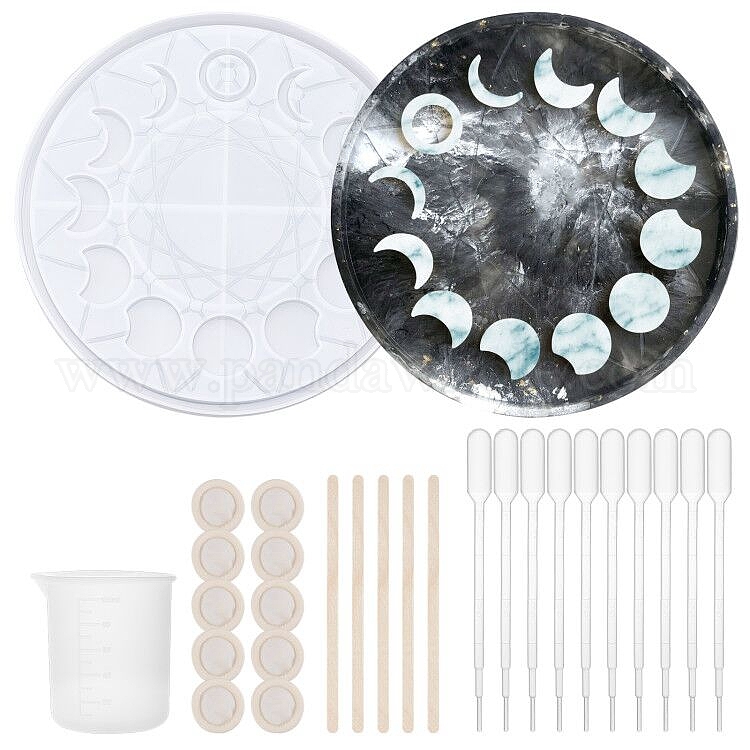 Наборы для круглых форм для подноса карт Таро с изображением луны и звезд из силикона своими руками, с круглыми силиконовыми формами, силиконовая мерная чашка, пластиковые переносные пипетки, одноразовые латексные детские кроватки, березовые деревянные палочки