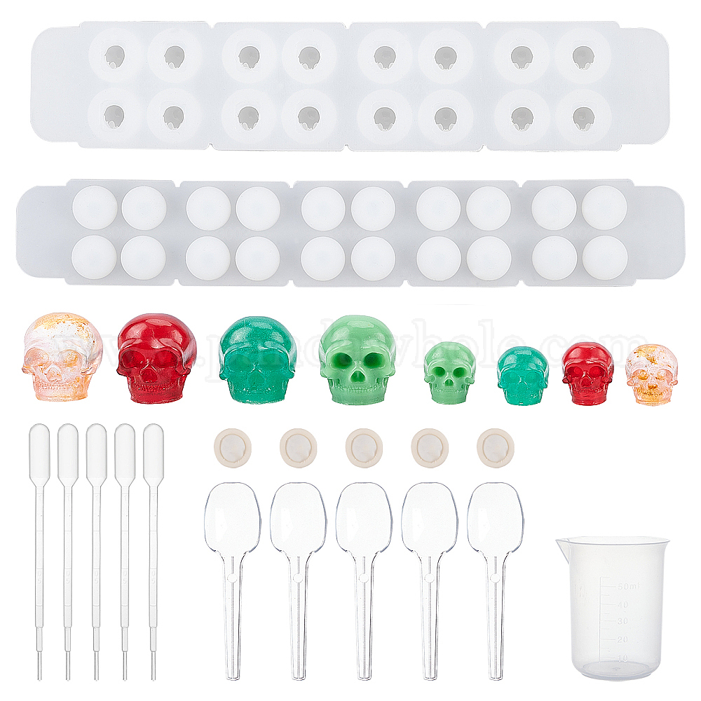 Силиконовые формы для браслета своими руками из черепа, формы для литья смолы, для уф-смолы, изготовление ювелирных изделий из эпоксидной смолы, с пластиковыми пипетками, латексные кроватки, пластиковый мерный стаканчик