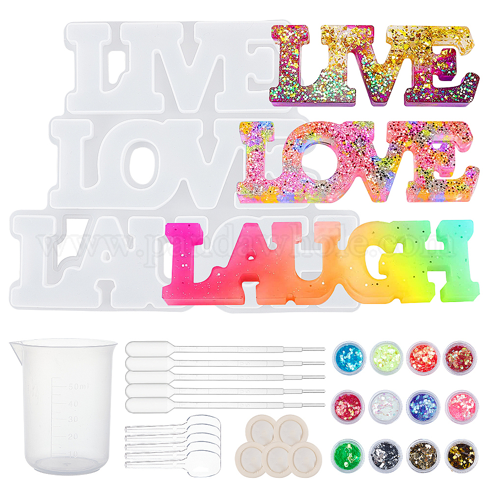 Наборы силиконовых форм для слов «любовь и смех», формы для литья смолы, для уф-смолы, изготовление изделий из эпоксидной смолы, с пластиковыми пипетками, блестки искусства ногтя, латексные кроватки