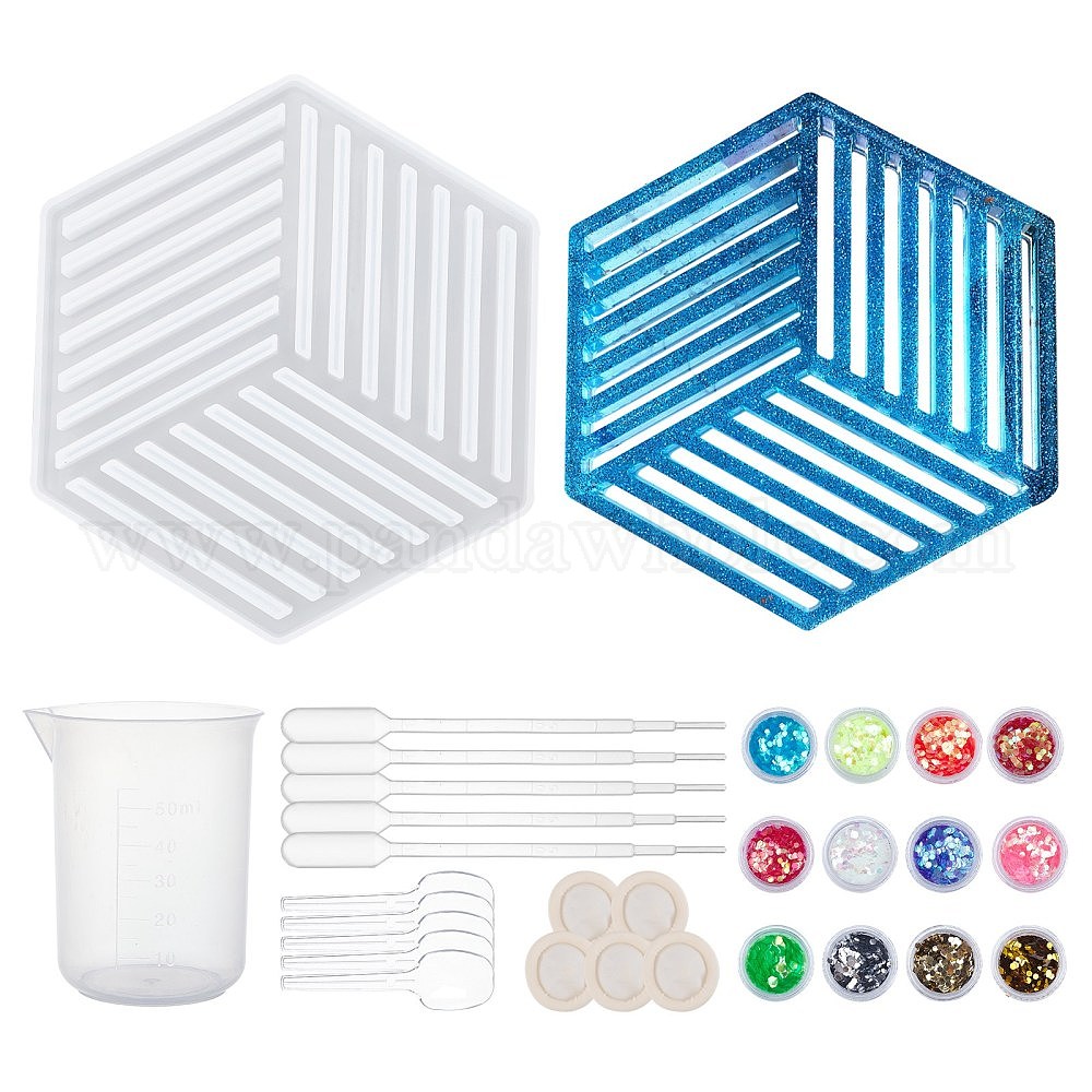 Olycraft полые шестиугольные diy чашки коврики силиконовые формы наборы, формы для литья смолы, для уф-смолы, изготовление изделий из эпоксидной смолы, с пластиковыми пипетками, блестки искусства ногтя, латексные кроватки