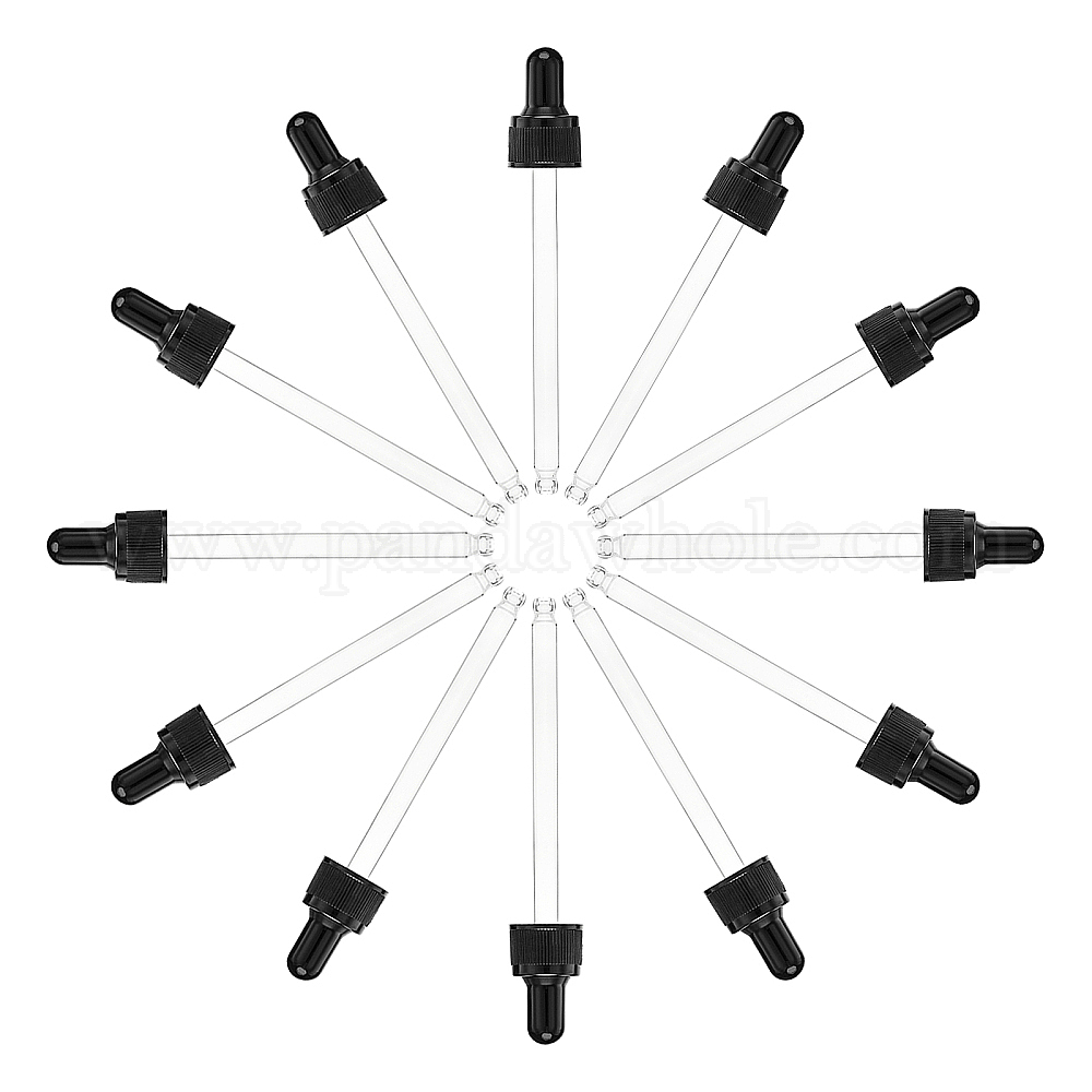 • Черный Стеклянные капельницы с прямым наконечником, с резиновой грушей и винтовой крышкой, для стеклянных бутылочек-капельниц эфирных масел, чёрные, 126x21 мм, мощность: 100 мл, 24sets / коробка