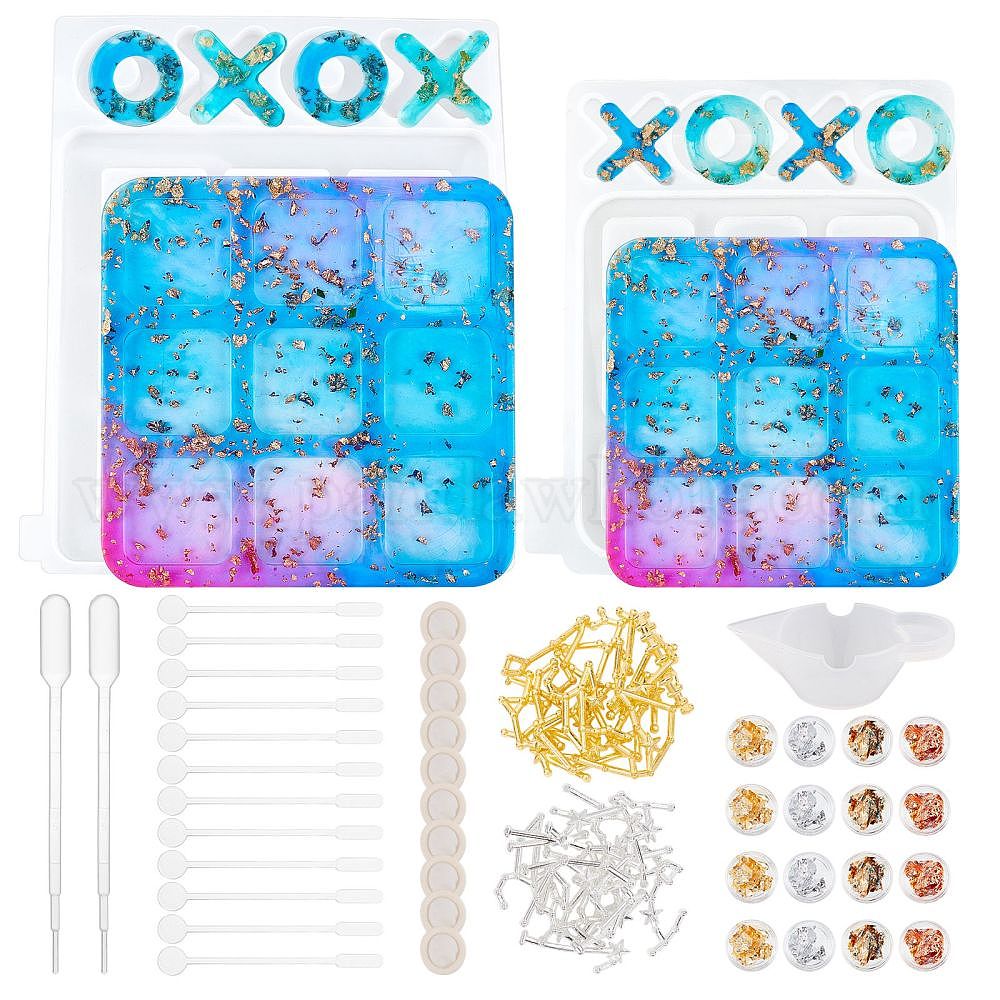Olycraft diy крестики-нолики настольная игра силиконовые формы наборы, стержень мешалки, трансферные пипетки, силиконовая миска, сплав цинка кабошонов, фольга для ногтей