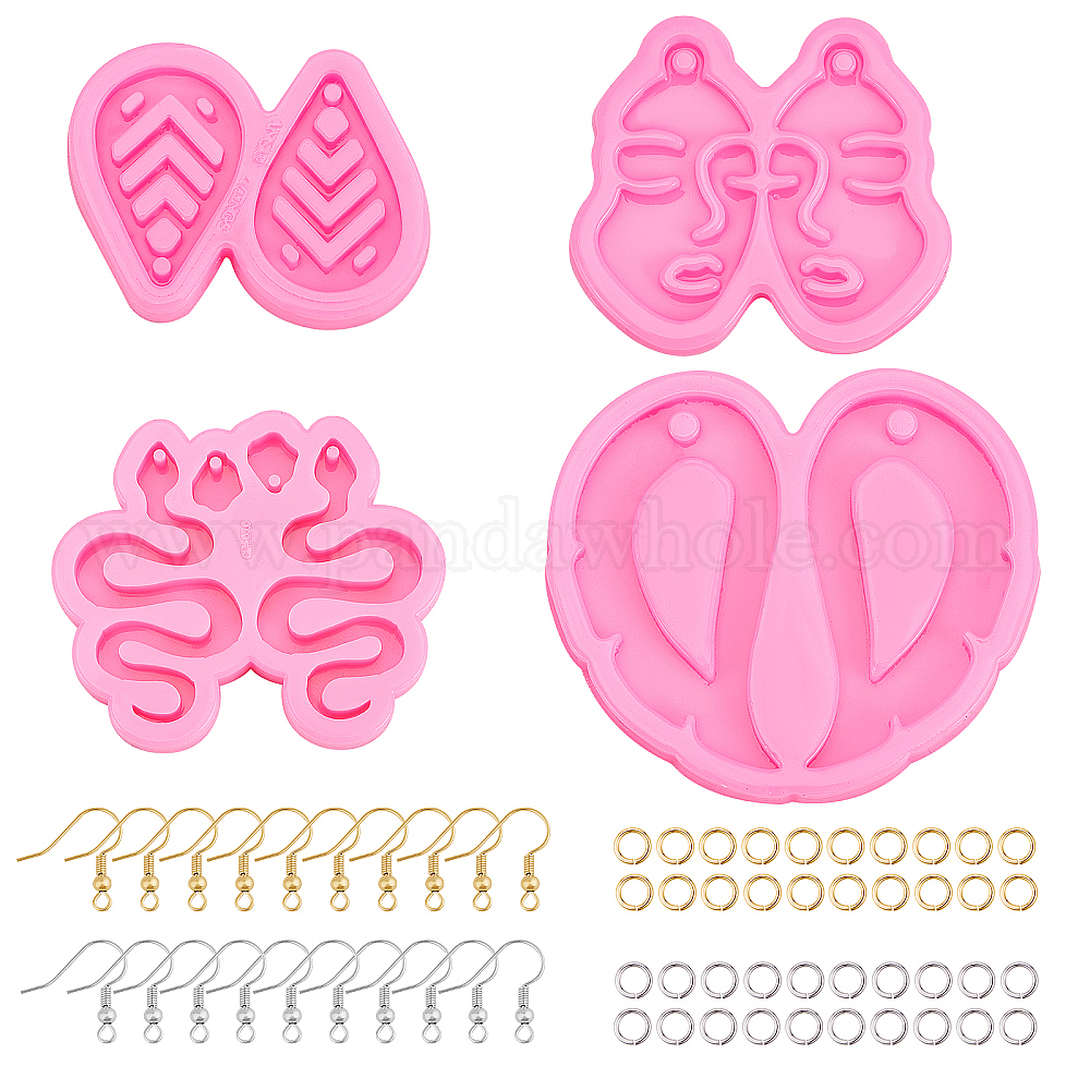 DIY серьги силиконовые формы наборы для изготовления, включая силиконовые формы для подвесок смешанной формы, железные крючки для серег и открытые прыжковые кольца из нержавеющей стали 304