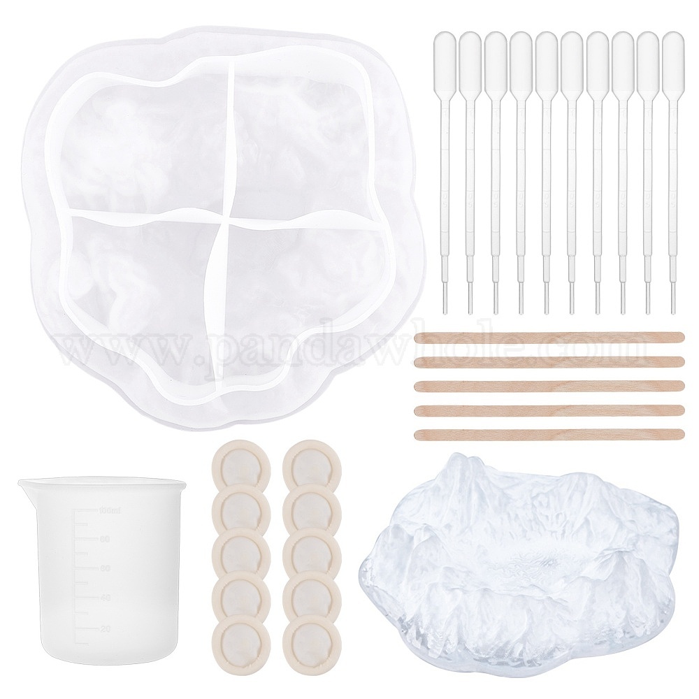 Наборы для самостоятельного изготовления пепельницы, с силиконовыми формами, силиконовый мерный стакан 100 мл, пластиковые переносные пипетки, березы деревянные ремесленные мороженого палочки, латексные кроватки